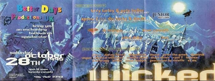 LINEUP: Terry Farley & Pete Beller, Xpres-2, Djs rocky & diesel, DJ marome, Dave C, John D, Danny Henry, Dogwhistle, Mural, Peter The Greek, Dominik, Sniper, Mystical Influence, Minute Maid, Mark Oliver, Ryan 7, Terence, Rave Bragg, Ashley, Jason Hodges, Percussion by ninette, EZ MC